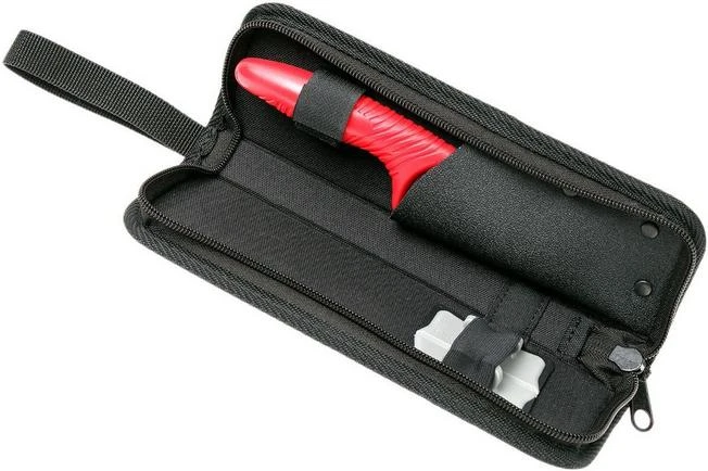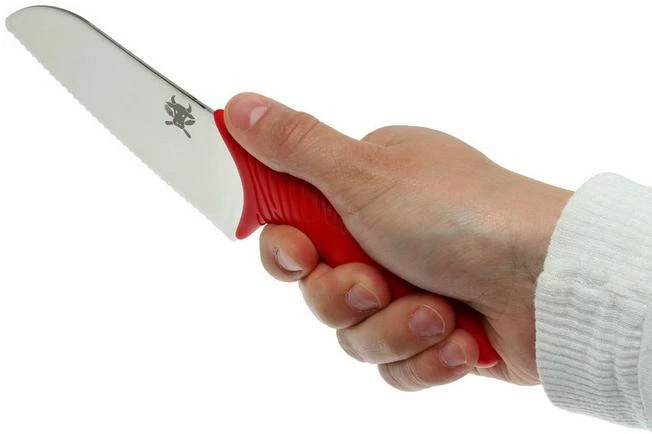 Tim Mälzer has created a special knife for children, to make sure that Kai Shun enthusiasts can pass on their passion to the next generation. He is convinced that, when children can help in the kitchen, they will learn about and be more aware of food. Which is important for the rest of their lives! Of course, they do have to be able to work safely and that’s why this knife has a relatively large handle with ridges. The finger protector, dimensions 6.2×5.8 cm, will protect the inexperienced chef from little accidents. The finger protector has a flexible strip, so it can bend with the fingers. Of course, supervision remains prudent, but kids can safely help out in the kitchen with this knife.