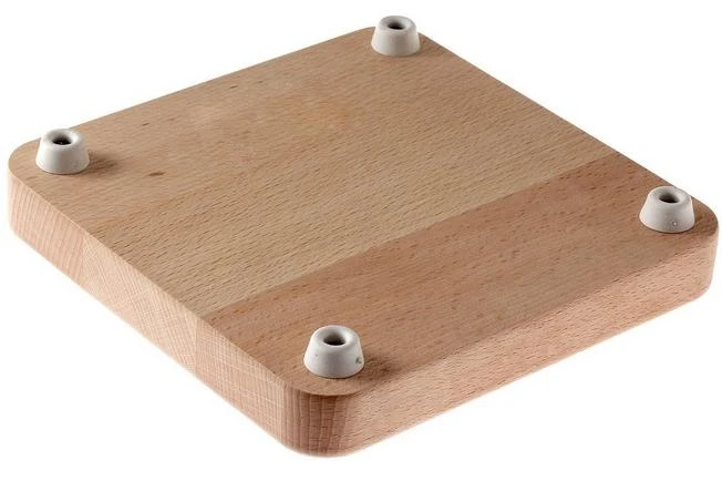 The Triangle herb chopping board is specially designed to use when cutting with a herb chopper. The square cutting board has a hollowed-out part that follows the moon-shaped blade of a herb chopper. This causes the cutting of herbs and small vegetables even easier.