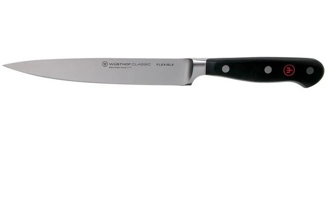 The Wüsthof Classic filleting knife is enhanced with a flexible, slim