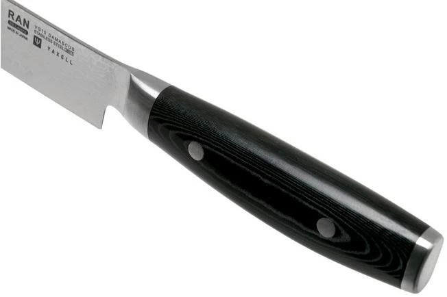 The Yaxell Ran ham knife 23 cm is a large and stylish Japanese kitchen knife. Thanks to the long blade you can quickly cut wafer-thin pieces of ham. The dimples in the blade ensure that food does not stick to the blade.
