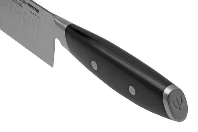 The Yaxell Tsuchimon nakiri is a traditional Japanese vegetable knife with a modern twist. The nakiri can be found in almost every Japanese kitchen. The high and square blade is great for quickly cutting vegetables, fruit and herbs. The high blade allows you to safely guide the blade along your knuckles while chopping. Without a doubt, this is the go-to knife for finely chopping carrots, cucumber, cabbage and any other types of vegetables.