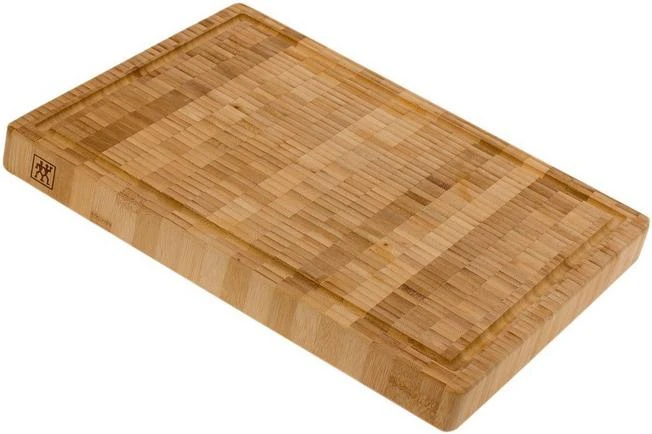 This Zwilling bamboo cutting board is a large, practical cutting board. You can use both sides of this cutting board because it doesn’t have feet. One side has a slot on the edge. For example, moisture can be collected in this slot. As such you will never get your table cloth or counter top dirty. The cutting board is made of bamboo, a sustainable and hard type of wood.